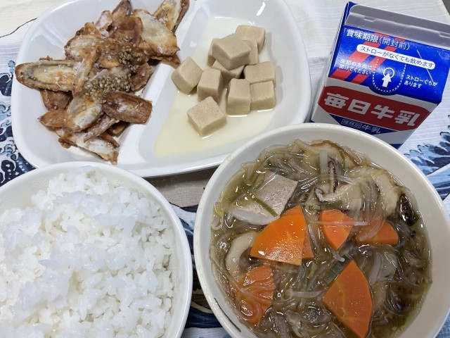 ごじるに焼き鳥、そして切り干し大根の煮物で学校のおいしい給食の後半戦が始まりました。