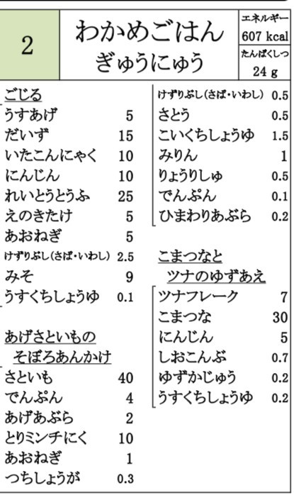 そして、人気のわかめごはん。にびたしは、津田南小での福ちゃんが仕切りに食べようね!と言っていたおかず。1学期にも紹介しました。さあ、本校はどうなんでしょうか。調理員さん、いかがでしたか?