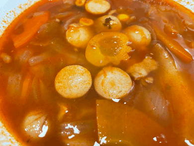 玉ねぎ一色のお汁でした。にんじん、玉ねぎ、青ネギとお出汁はここからも出てきます。そして、ラッキーにんじんもたくさん入っていました。あたたまりました。