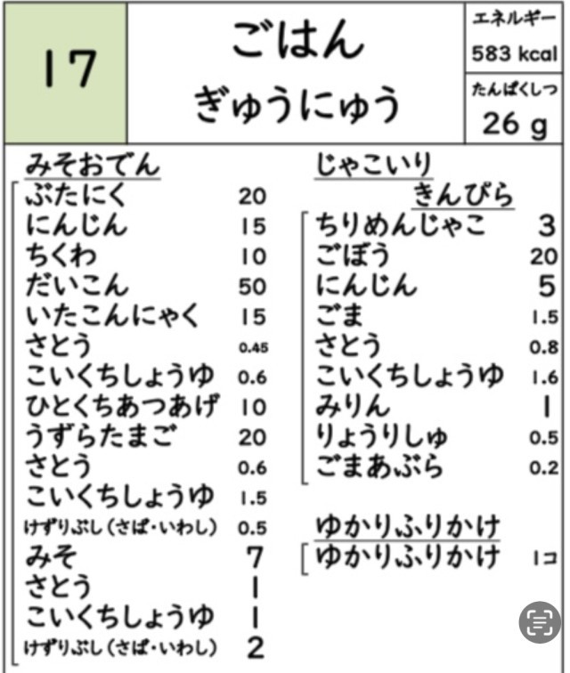 • 1月28日(水)おいしい給食(みそおでん🍢)