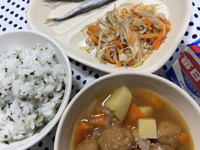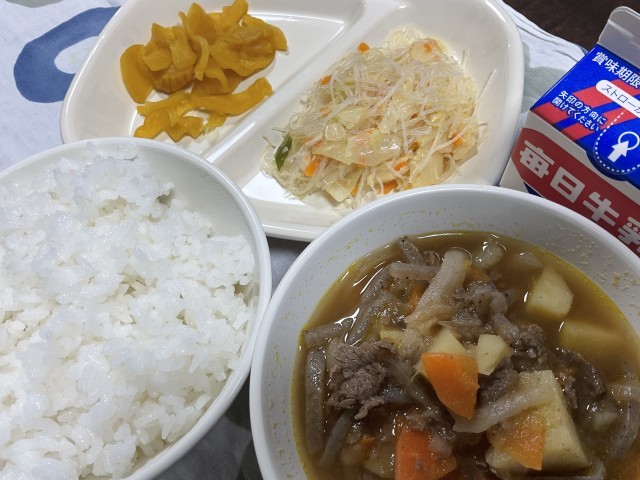よく噛んで食べると旨味と甘味が引き立つので、カレーのおともにぴったりのおかずでした。今日は、人参とツナと一緒に炒めてソテーになっていました。