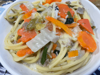 12月19日(金)おいしい給食(冬野菜の豆乳スパゲティー)