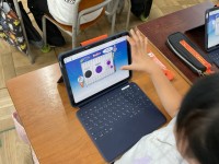 絵の具の色混ぜの体験をタブレットでしました。 色が変わる毎に大変驚き、興味津々の...