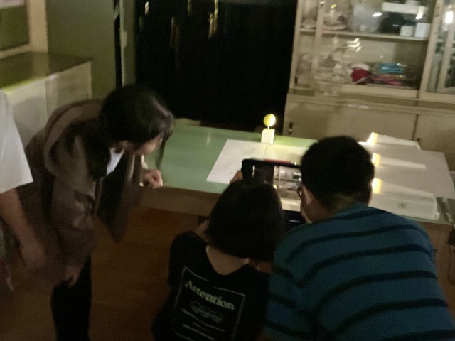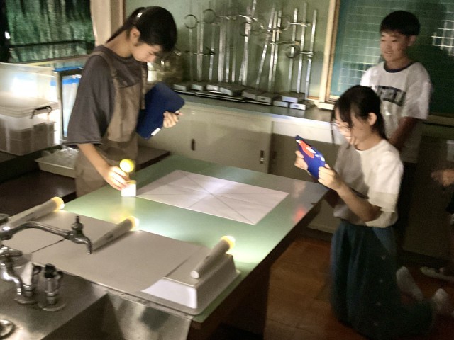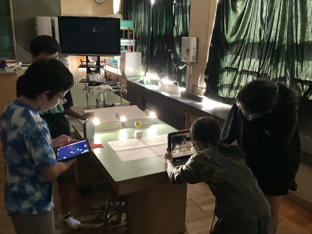 理科室を真っ暗にして、月の様子の変化を記録します。