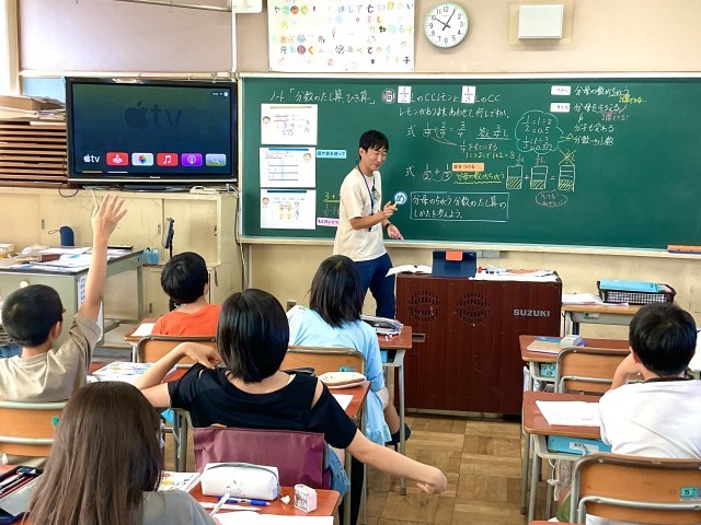 今日のめあては「分母のちがう分数のたし算のしかたを考えよう。」です。