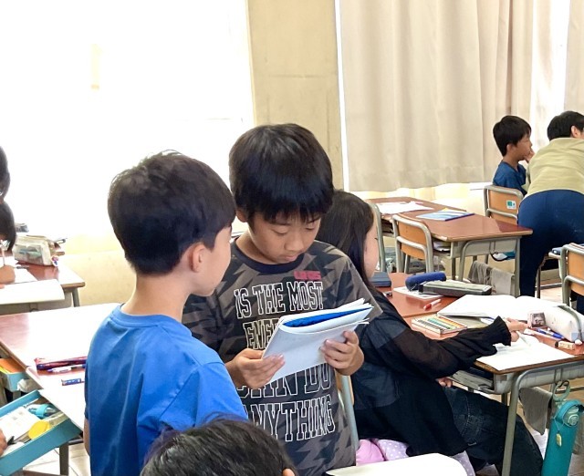 友達と相談し合ったり、先生の代わりに前で説明したり、自分たちで考え、活動する力が育っています。