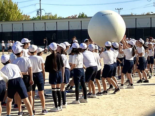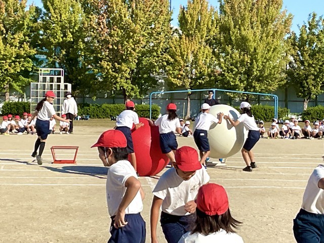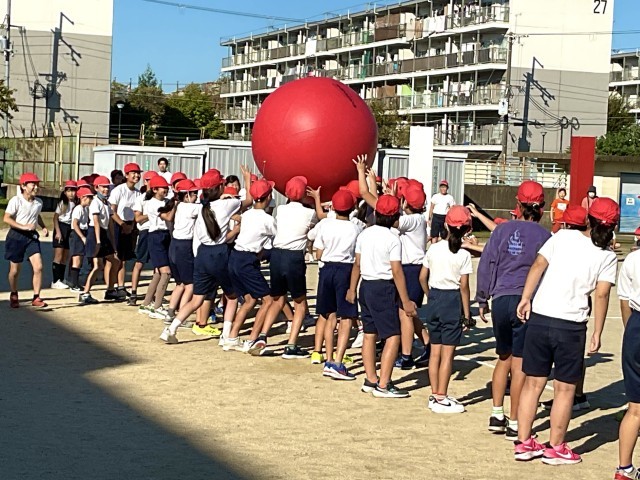児童会種目の大玉おくりの練習です。