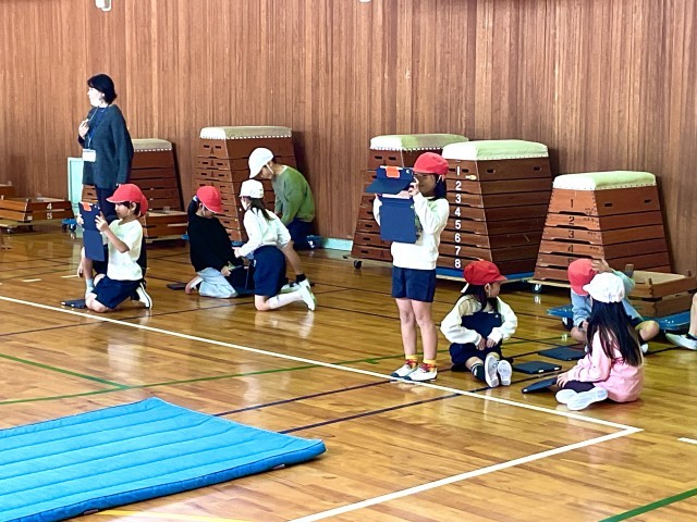 友だちに自分が跳んでいる様子を録画してもらいます。