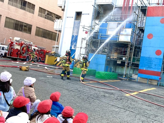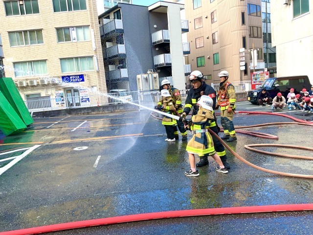 ホースはとても重くて、水の勢いに振り回されそうになりながら、一生懸命炎めがけて、頑張りました。
