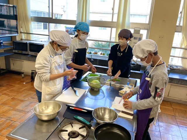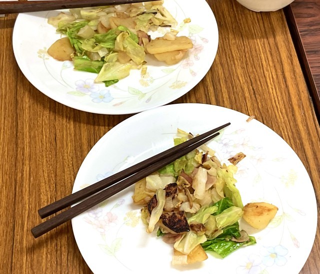 今日は、調理実習で野菜炒めを作りました.
