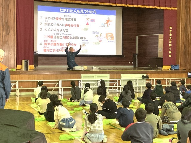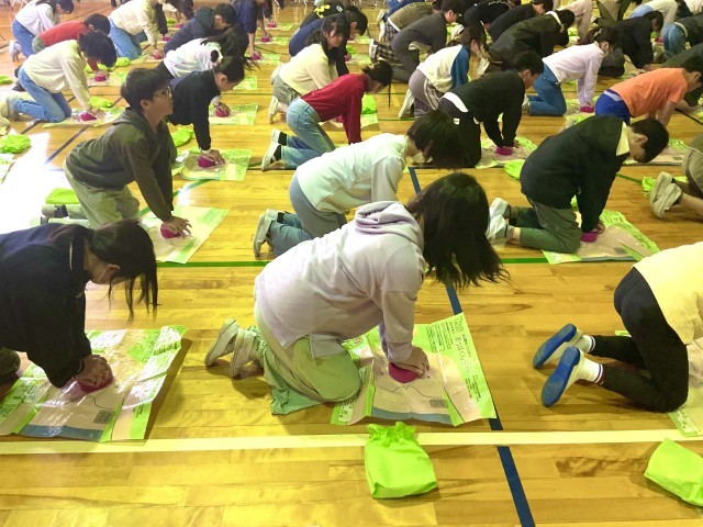 皆、真剣に話を聞きながら、実際に胸骨圧迫を体験しました。