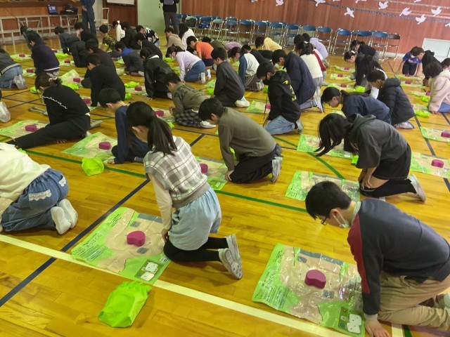 一人一人が「あっぱくん」を使って命を守る行動を学びます。