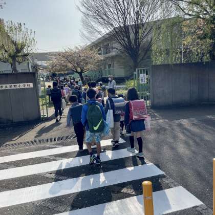 4月8日(金)登校の様子 公開日 2022/04/08 更新日 2022/04/08 学校の様子 禁野小学校初日の登校です。保護者やPTA、地域の方々、教員、議員さん、警察、教育委員会の方々に見守られ、子どもたちは安全に登校できていました。皆さま、ご協力ありがとうございました。今後ともよろしくお願いします。(本日、ブログ等の写真掲載のプリントを配布しますが、様子を知っていただくため掲載しています。ご容赦ください。) いいね(0)