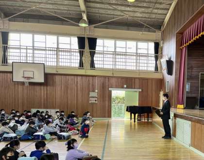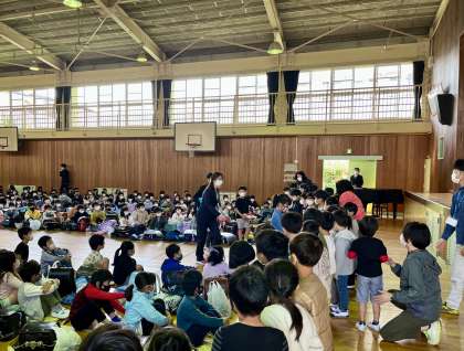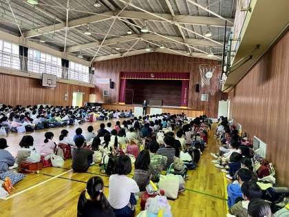 始業式を(全天候に対応できるよう昨年度末から準備されていたように体育館で)行いました。校長からは3点お話をし、お家の人に話をできるように伝えています。ぜひ、お子様から聞いてあげてください(明日、3点のお話についてお知らせします)。整然と並び、静かにお話を聞くことができていました。