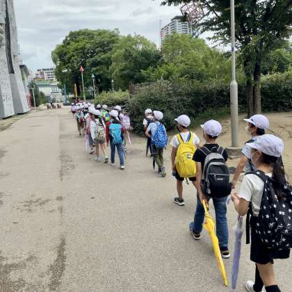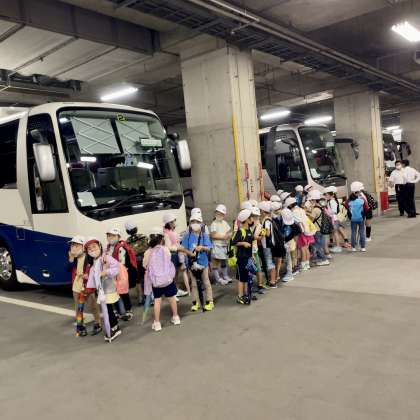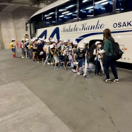 キッズプラザに到着しました。記念撮影をし、いよいよ体験です。