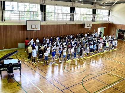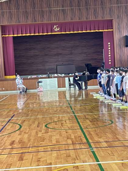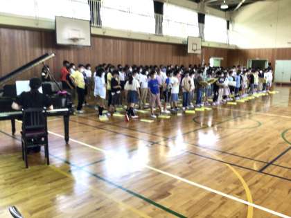 6月8日(水) -6 5、6年 合唱練習 公開日 2022/06/08 更新日 2022/06/08 学校の様子 本校校歌を作曲していただいた酒井 格さんと開校式当日の伴奏者に来ていただき、開校式に向け合唱の練習を行いました。とてもいい仕上がり具合となっています。当時もきっと素晴らしい歌声になると思います。保護者の皆様も練習をお願いします。 いいね(0)