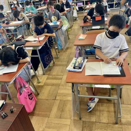 6月9日(木) -3 4年 算数 1/4 公開日 2022/06/09 更新日 2022/06/09 学校の様子 4年生算数の授業では、180°より大きい角度のはかり方についての学習でした。答えを求めるだけでなく、その方法や説明ができるようにグループや全体で考えていました。教室掲示で自学自習ノートのコピーがあり、家庭学習も頑張っていることが分かりました。 いいね(0)