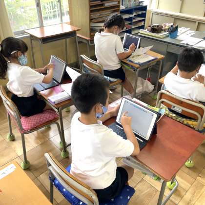 6月15日(水)-4 1年 さんすう 1/4 公開日 2022/06/15 更新日 2022/06/15 学校の様子 1年生さんすうのじかんは、ひきざんで ぶんしょうもんだいを つくることが めあてでした。文章問題で使う文言を考え、その後、ロイロノートのカード3枚で絵と式、答えを作っていました。最後にクラスのみんなに問題を出し、答えるなどしていました。みんな楽しそうに取り組んでいました。 いいね(0)