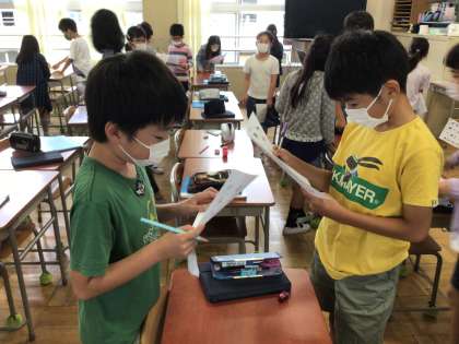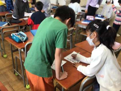 6月14日(火)-3 4年 外国語活動 公開日 2022/06/14 更新日 2022/06/14 学校の様子 「Let’s play cards!!」「Yes,let’s.」誘うときの言い方や答え方を学習しています。たくさんの友だちを誘うことができました。 いいね(0)