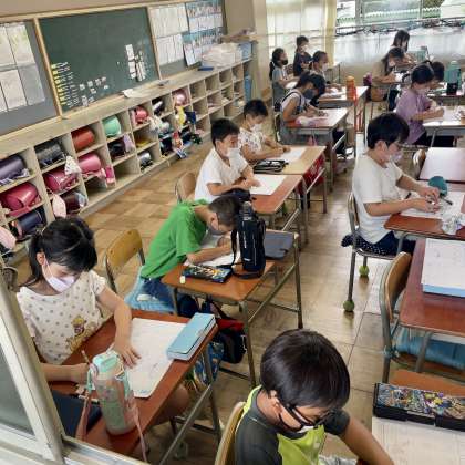 3年生国語では、漢字の成り立ちの学習でした。熱心にプリントに取り組んでいました。