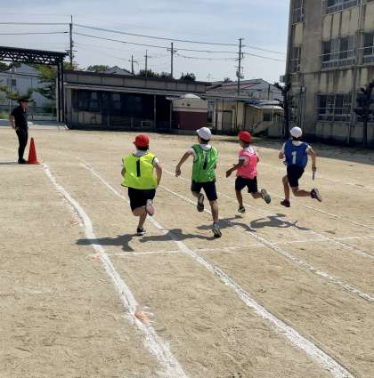 昨日に続き、選抜リレーの練習では実際に入場の仕方と実走を行いました。バトンパスはまだまだ改善の余地があるようです。