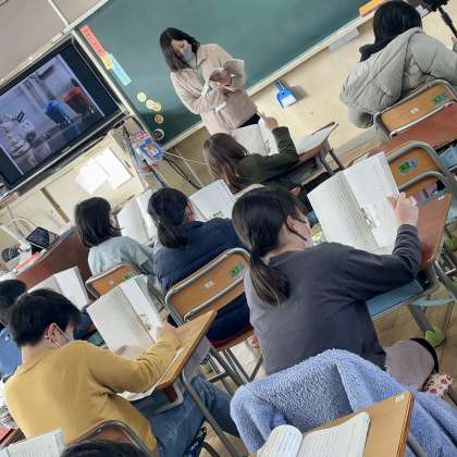 5年生国語の授業は、「弱いロボットだからできること」という少しかわった題名の単元のはじめての学習でした。まず、ロボットをテレビに映し、紹介後、読み合わせをしていました。どんなお話なのでしょうか。