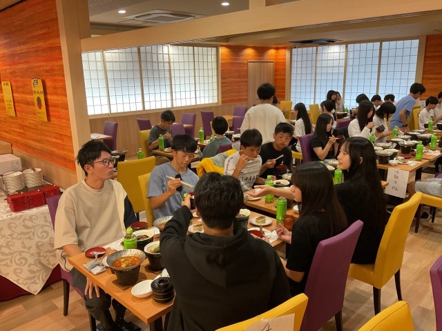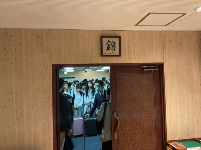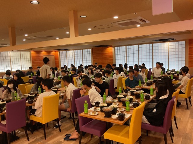 10月1日(水) 修学旅行 Part6 公開日 2025/10/01 更新日 2025/10/01 一中の様子 入館式において、皆元さんが代表で挨拶をしてくれました。入館式を終えて入浴し、野口さんの「いただきます」で食事開始、美味しくいただきました。たくさんおかわりをしていた人もいて、たくましく感じました。野口さんの「ごちそうさま」で食事を終え、皆さんが楽しみにしている学年レクの時間になります。 +6 いいね(1)