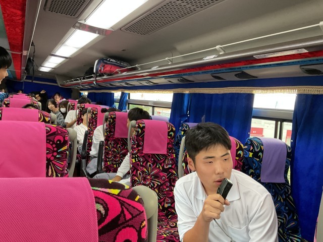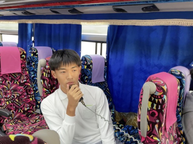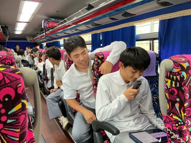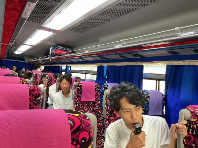 トヨタ自動車での活動を終え、宿泊先へ帰るバスの中の様子です。