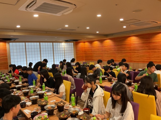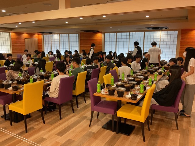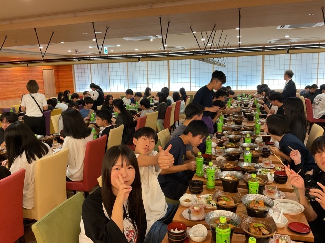 10月2日(木) 修学旅行 Part12 公開日 2025/10/02 更新日 2025/10/02 一中の様子 入浴時間があり、その後夕食時間です。谷村さんと高島さんで「いただきます」の発声で、食事開始となりました。談笑しながら食事し、谷村さんと松田さんで「ごちそうさまでした」の発声で食事終了しました。このあとは、各学級単位で学級レクの時間です。 +3 いいね(2)
