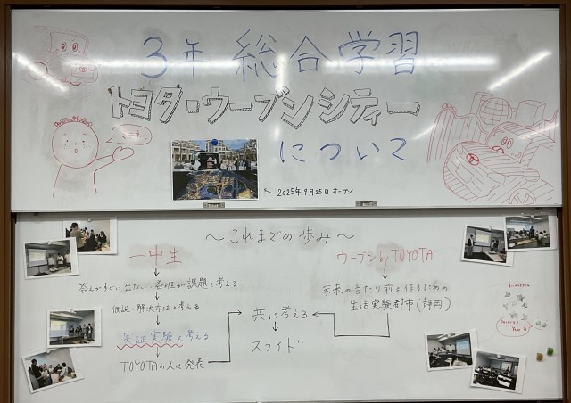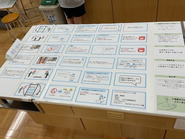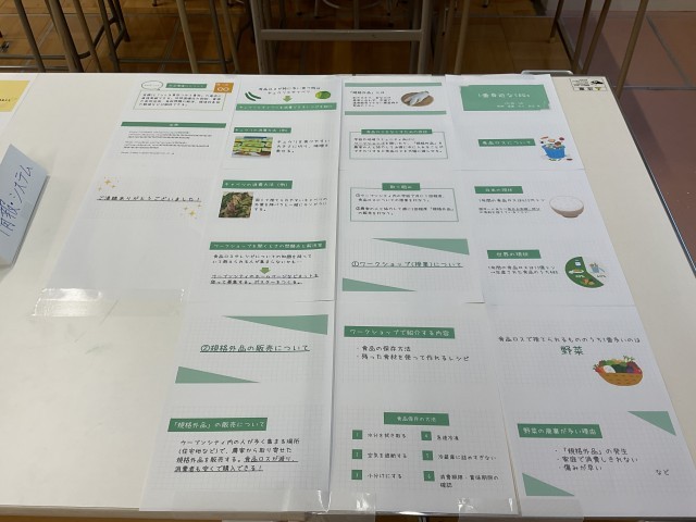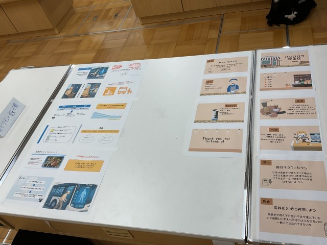 調理室では3年生総合「ウーブンシティでやるべき実証実験」が展示されていました。