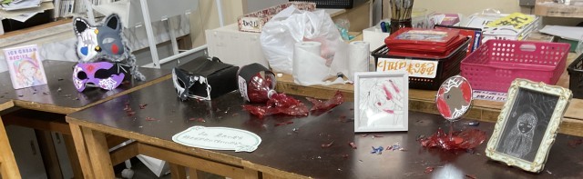 10月24日(金) 文化祭 Part11 公開日 2025/10/24 更新日 2025/10/24 一中の様子 美術室での美術部による「ハロウィンパーティにご招待」の展示です。趣向を凝らした丁寧な作品の数々です。 +7 いいね(0)