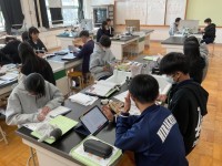 田中指導主事からは、取り組んでいる様子や作成している内容を見て、どうしようか悩んでいる際には周りの人たちと議論していることや、よく考えられた内容等に感心していました。