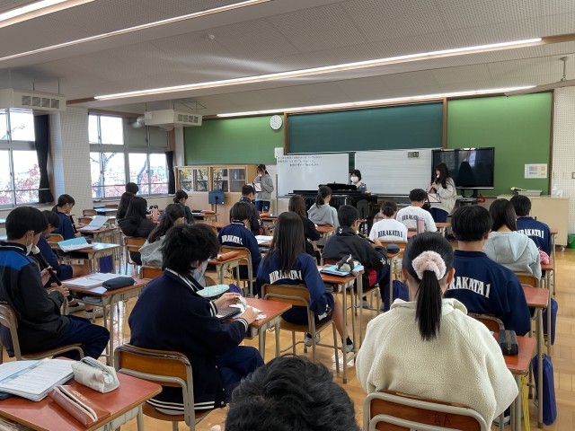 3年生の保健体育科の授業でソフトボールを習っていて、ノックを打つ感じでネットに向かって打とうとしているのですが、なかなかバットがボールに当たらない生徒たちがいました。ついつい、バットを短く持ってコンパクトに振ると当たるよって伝えると、ポンと当たり大喜びしてくれました。私も当たった!と喜び、嬉しく思いました。
