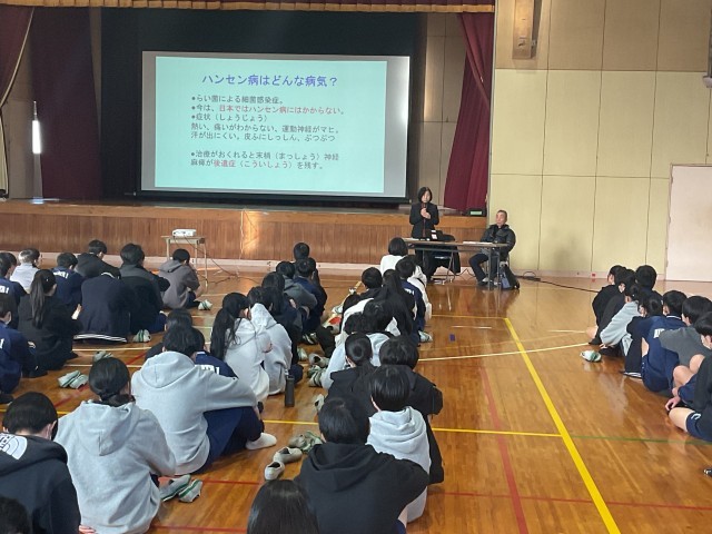 「ハンセン病問題から考える」をテーマに、ハンセン病回復者支援センターからコーディネーターといちようの会からも講師としてお越しくださり、実体験に基づくお話しを聞きました。