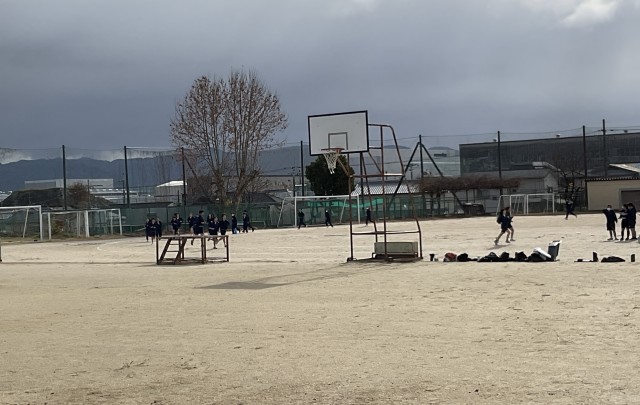 雪が降りそうな空でしたが、暖かいためか降ることはありませんでした。体感としては寒い状況でしたが、各学年持久走を一生懸命に走っていました。