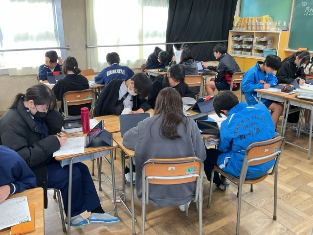 教室ではわからない箇所があれば他の人に尋ねたりしてクリアしていっていました。