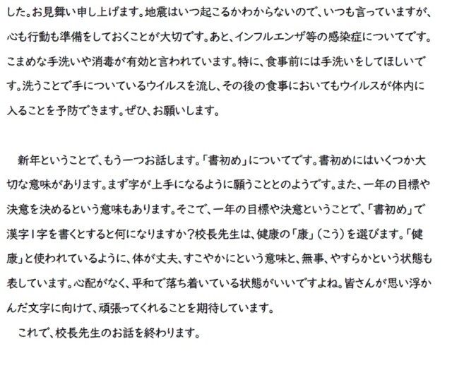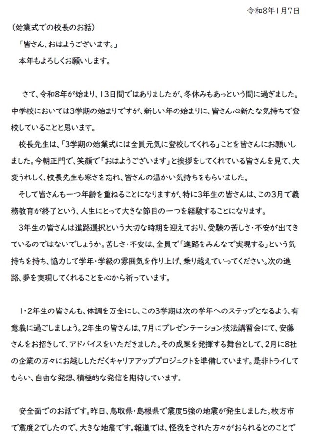 3年生の皆さんへは、卒業式に式辞にてお話しする機会はありますが、始業式・終業式では最後の機会でありました。