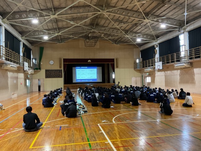 本日の6時限目、体育館にて2年生総合的な学習の時間において、2月5日・6日に行われますキャリア・アップ・プロジェクト(ワークショップ型職業体験)のガイダンスが行われました。