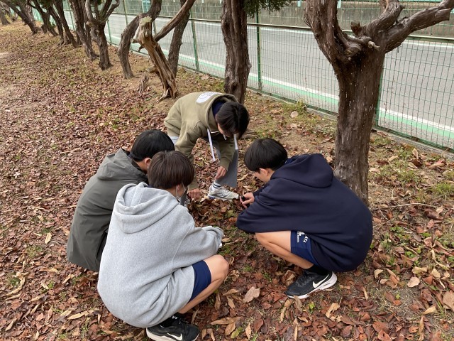 3年生理科の授業で、土の中の微生物を調べるため、敷地内で土を採取しているグループを見かけたのでその様子を撮影しました。その後の理科室での様子も撮影しました。どのような微生物が見つけられたか、後日聞いてみたいと思います。