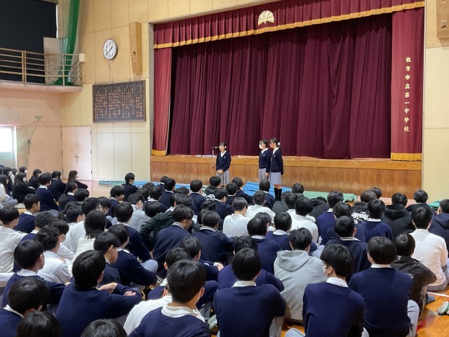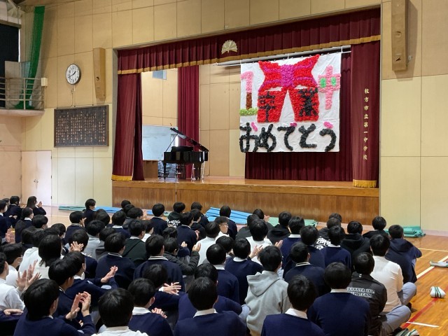 3月10日(火) 3年生送る会 Part1 公開日 2026/03/10 更新日 2026/03/10 一中の様子 本日の5時限目は、3年生送る会が開催されました。3年生の入場から、生徒会作成の1・2年クラスメッセージのサプライズ動画、1年生からの贈り物です。1000以上の花で作られた花文字・花絵で、素晴らしい作品でした。 +5 いいね(3)