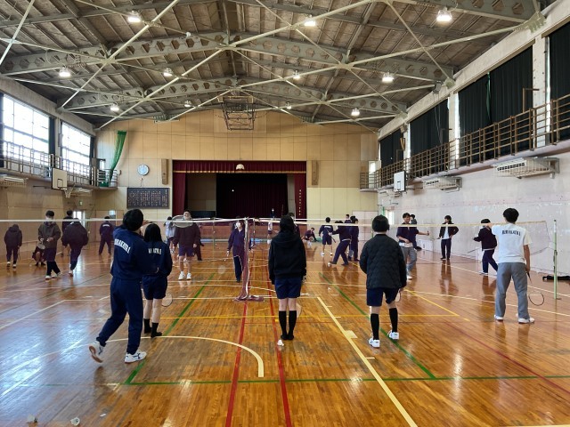 先ほどの本日受検をしない生徒たちは登校し、体育館でバドミントンを行っている様子です。