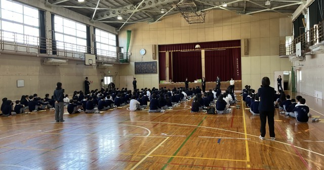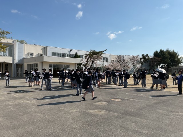 各学年の集合場所での発表では、神妙な面持ちで配布された学年だよりを熱心に見入っていました。
