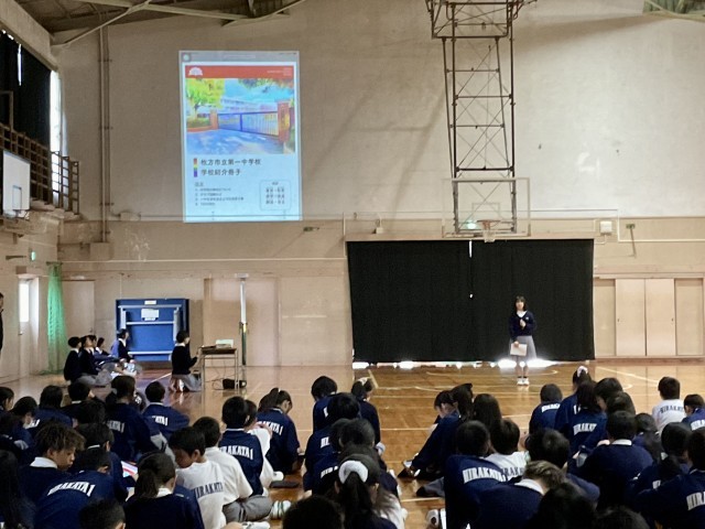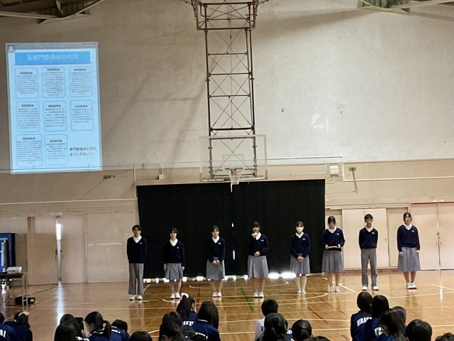 まず、生徒会役員が、しおりに沿って学校生活や生徒会の専門委員会、クラブの説明を行いました。分かりやすい話し方で、とても良かったです。その後、各クラブの紹介があり、1年生は見学を行いました。