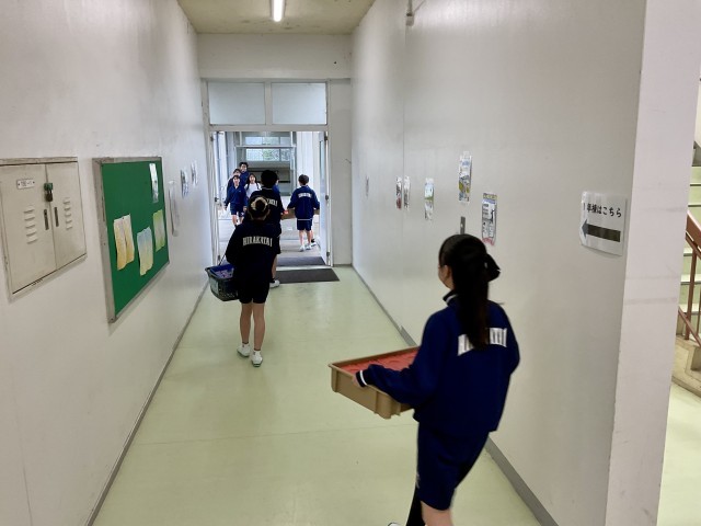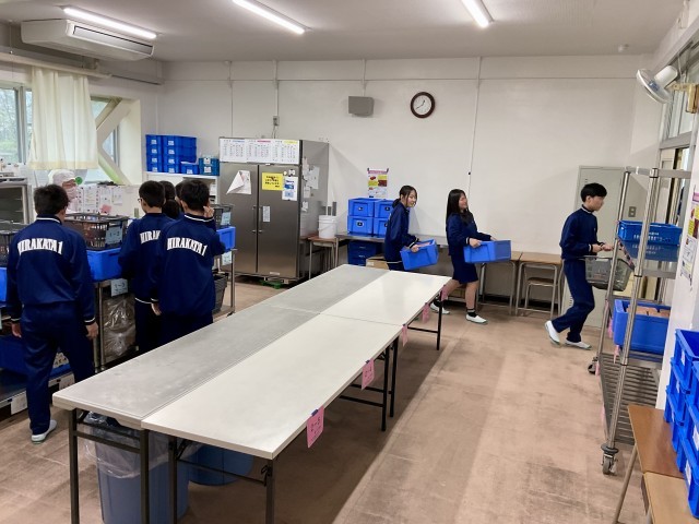 本日より給食が始まりました。係を決め、手際よく作業が進められていました。