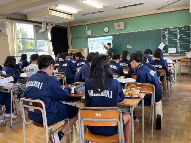2年生英語の授業では、未来形の学習で、週末の予定を表現できるようになることがねらいでした。