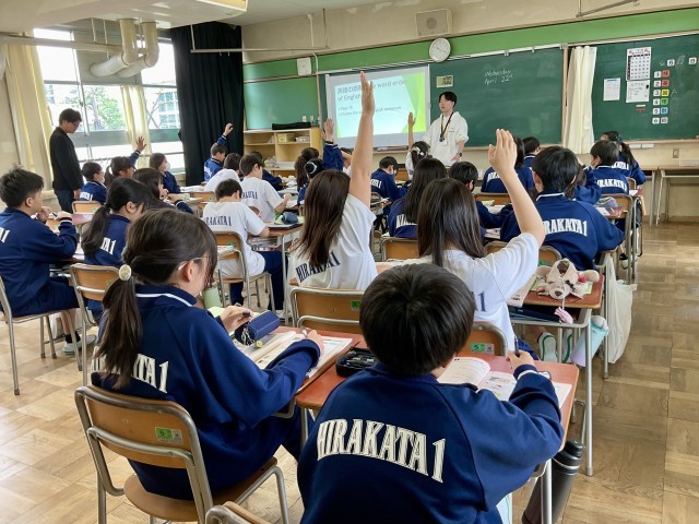 英語の語順や文字の書き方など、基礎的な内容を確認しながら学習し、生徒たちは大変積極的に授業に参加していました。
