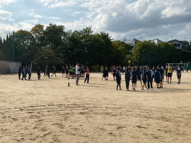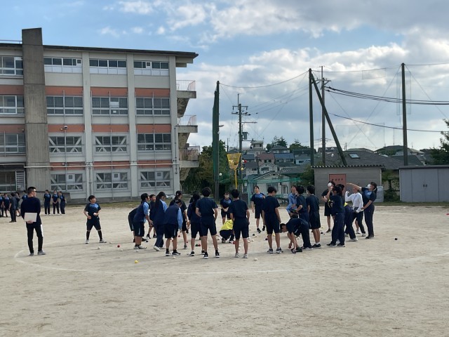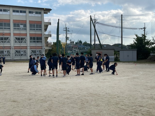 午後からは、団対抗種目の練習がありました。異学年でチームを組んで競技に取り組みました。練習中ですが、声を掛け合ったり、うまく競技が進むと、歓声が上がっていました。体育祭に向けて、練習や準備など、屋外での活動が普段よりも増えます。当日まで、規則正しい生活、休養をこまめに取るなどの体調管理にも留意してください。
