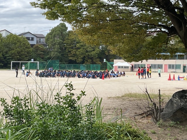 学年種目とクラスリレーの練習を行っています。 練習とは思えないほど、声援や歓声が上がっています。練習後は、1時間の振り返りを皆で行っています。本番に繋げる、大切な時間です。2年生は2回目の体育祭です。昨年度の経験を活かして頑張って欲しいです。