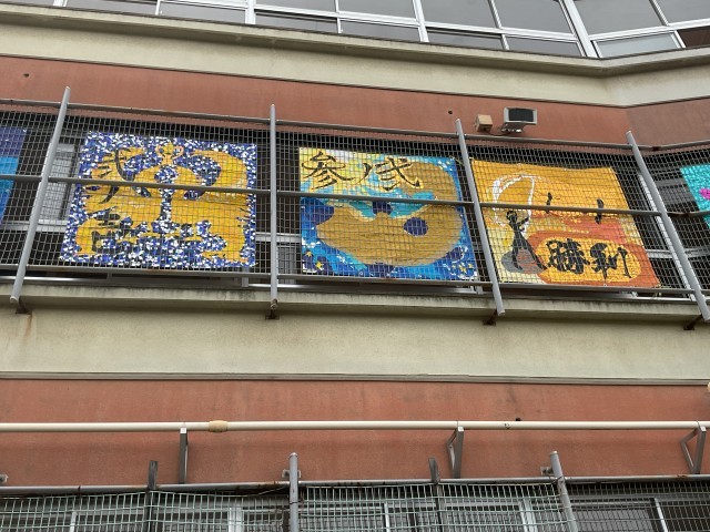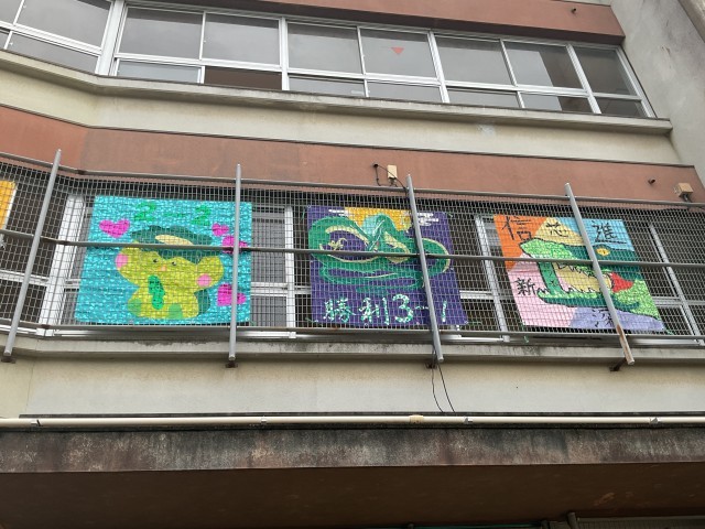 ホリゾントも、体育祭に花を添えてくれました。1学期末から制作に取り組み、ピースを一つ一つ丁寧に貼り合わせました。グラウンドで、離れてみても、グラデーションなどの工夫で、綺麗でした。