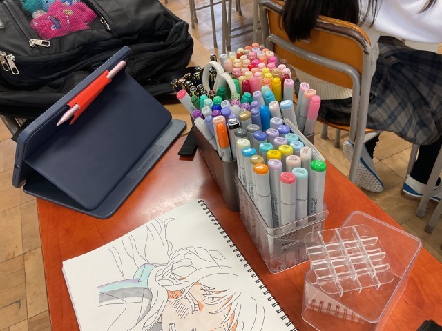 写真は、10月20日の文芸部の活動です。総合学習発表会後、3年生が引退となり寂しい気持ちもあるとのことですが、活動にしっかり取り組んでいました。イラストを時間をかけて丁寧に仕上げていました。制作途中ですが、作品を見せてもらいました。